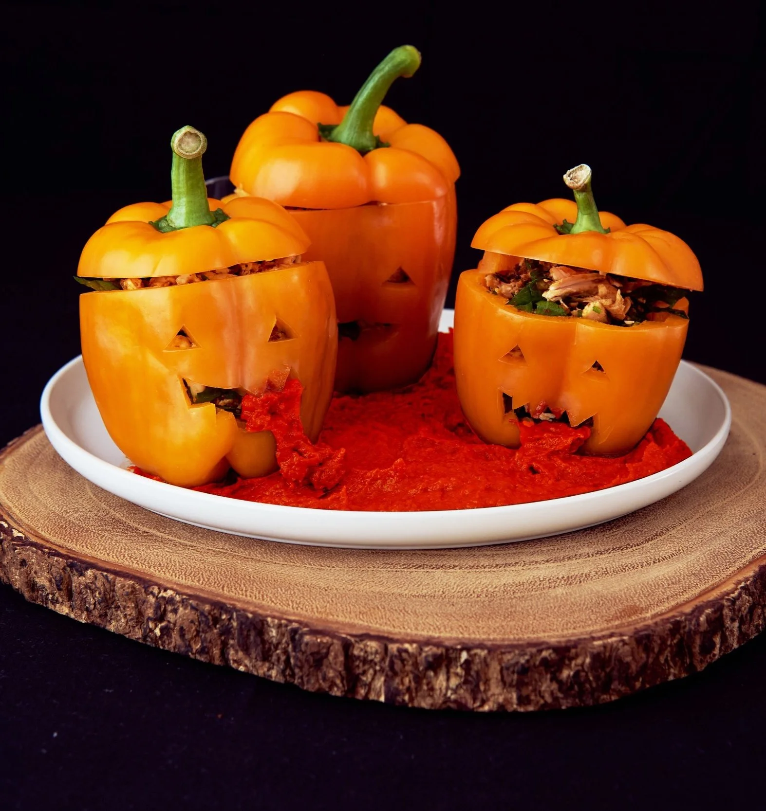 Ingredients: Orange Capsicums, Chicken stuffing, Marinara sauce.